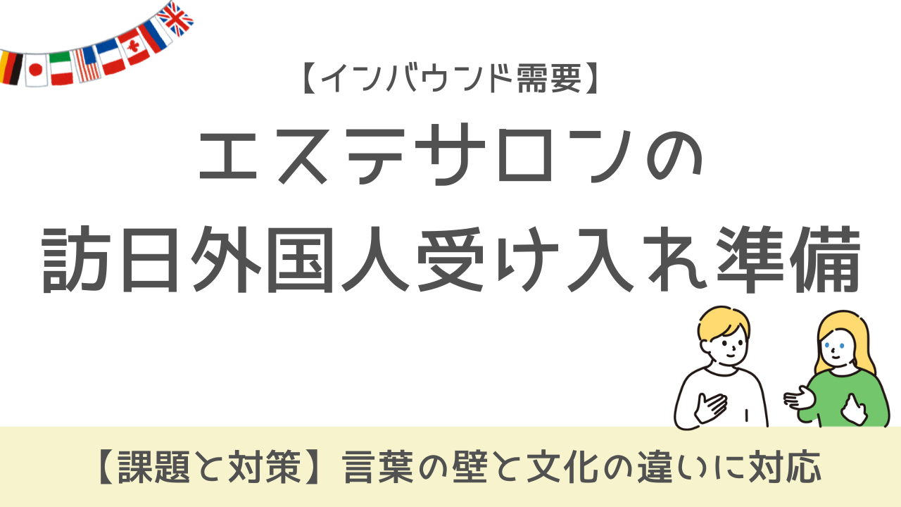 外国人旅行者の受け入れ準備に伴い、どうしても手間や時間はかかってしまいますが、エステサロンの環境を整えることで、集客・売上アップの可能性がより広がります。