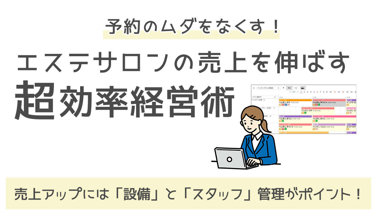 エステサロンの売上を伸ばすには、「設備」「スタッフ」「予約」の最適な管理が不可欠です。